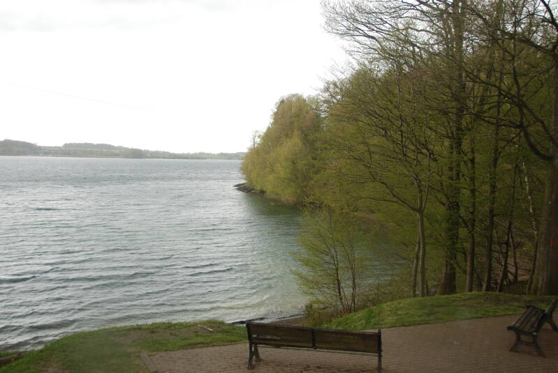 Terug op moeder aarde ontdekken we dat er vele mogelijkheden voor de bezoeker zijn. Een groot bord maakt melding van een wandelroute rond het meer van 16 km.