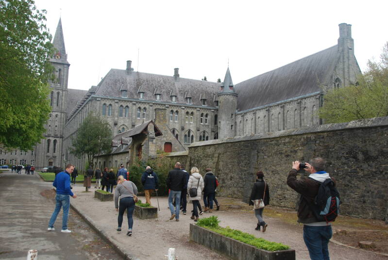 Niet geheel zonder toeval waren wij in de abdij Maredsous beland. Het is een groot gebouw met twee torens, opgetrokken uit vrij donkergrijze steen. De abdijen zijn door de middeleeuwen heen de drager en ontwikkelaar van kennis geweest. Boekdrukkunst, medische en economische kennis, het bewerken van ijzer, het creëren van kunst, het produceren van voedsel en zeker niet in de laatste plaats het brouwen van bier.