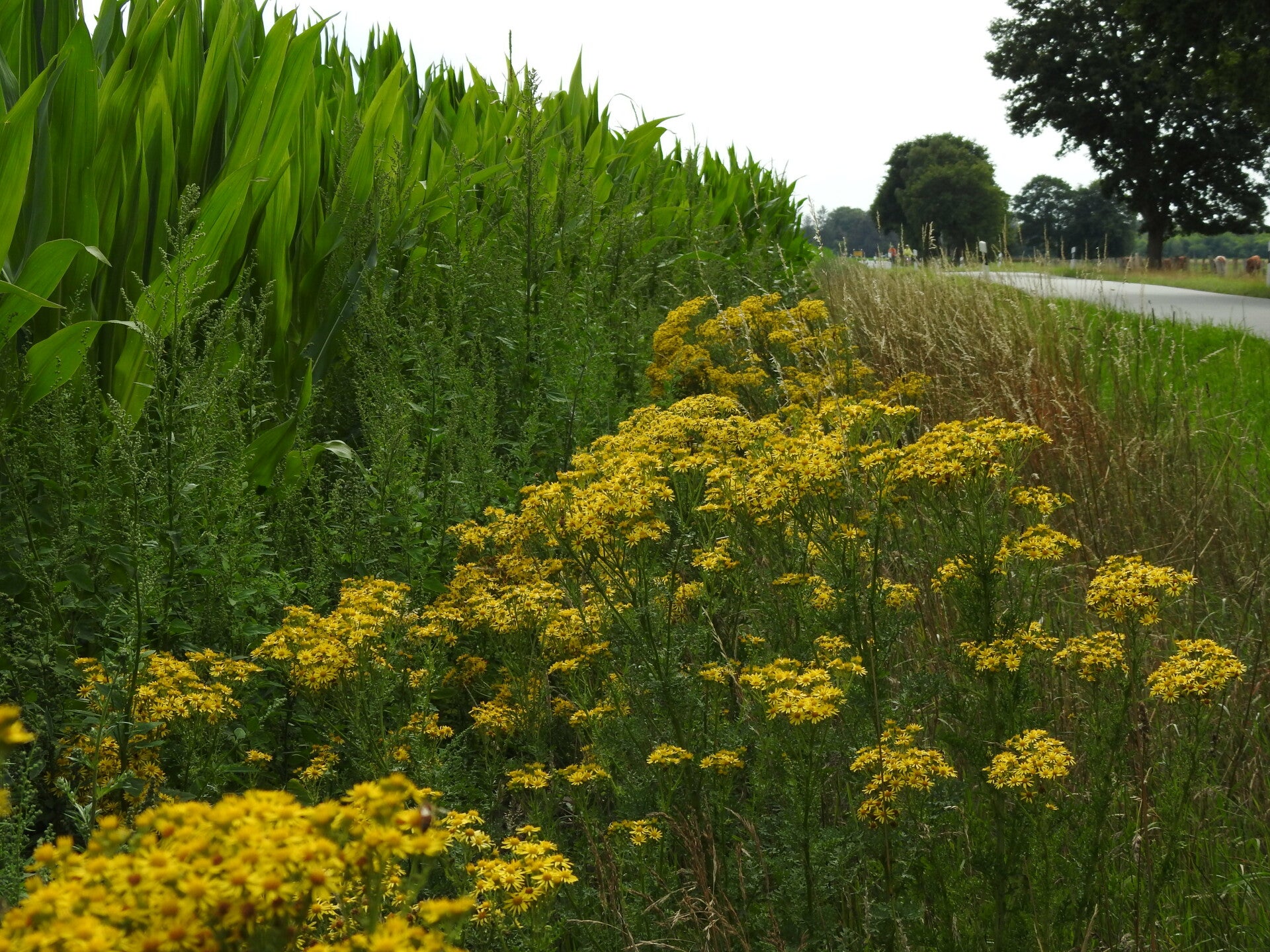 We fietsen door de prachtige natuur in het achterland van Bad Bramstedt. Het golvend landschap bestaat uit korenvelden, maisgewassen en grasland. Bossen en bomenrijen hebben de resterende ruimte opgeeist. Soms ligt er een smal hobbelig paadje wat voor een fietspad door moet gaan. We verzetten de zinnen. Ons hoofd is nu geconcentreerd op mooie natuur en overleven op de autoweg wanneer een fietspad ontbreekt.