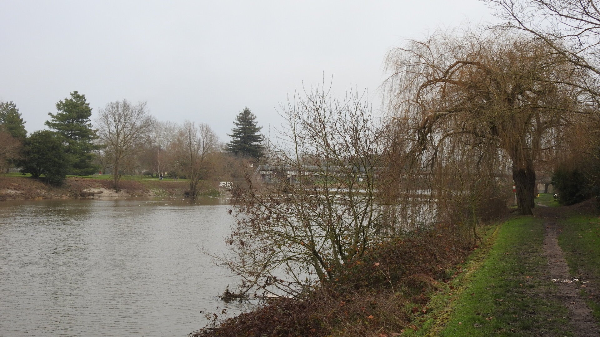 We willen een frisse neus halen en trekken daarvoor de stoute schoenen aan. We lopen een park in wat is gecreëerd tussen de waterpartijen van de rivier de Cher. Het is winter en de aardig ogende wandelpaden blijken kletsnatte blubberbakken te zijn. Deze blubber heeft hetzelfde effect als kleefsneeuw. We groeien per stap een paar centimeter. Als we weer op geasfalteerde paden komen, proberen we de troep kwijt te raken, maar dat lukt maar deels.