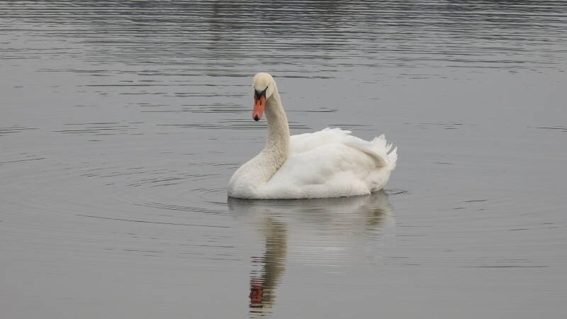 Het waterrijke park is overigens heel mooi. Er zijn sportattributen en een speeltuin aangelegd, overal staan picknickbanken. Verschillende soorten bomen wisselen elkaar af, wat zorgt voor een prachtige biotoop. In het zijwater van de rivier zwemmen een paar zwanen. Door de kou houden we ons parkbezoek kort. Bij de camper moet ik eerst de schoenen reinigen, maar daarna wacht ons warm verblijf en is er koffie.