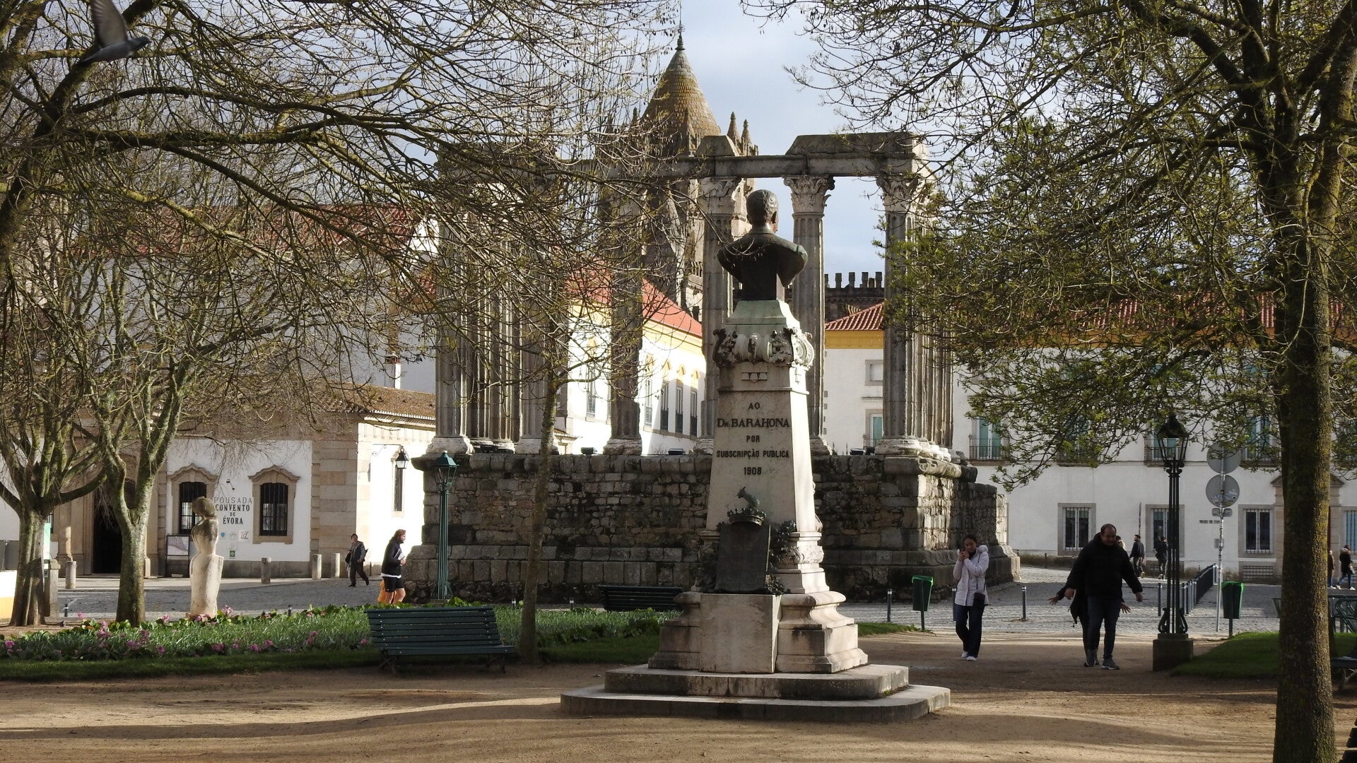 Op het hoogste punt bewonderen we de restanten van een Romeinse tempel en kunnen we eindeloos over het Portugese land kijken. Daarna bezoeken we de kathedraal, waar een heel programma klaar ligt voor de bezoekers. Via de toren kunnen we op het dak, we passeren de kloostertuin met mooie gewelven, we bekijken een museum met allerlei katholieke voorwerpen en uiteindelijk ook de kathedraal zelf.