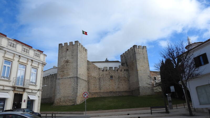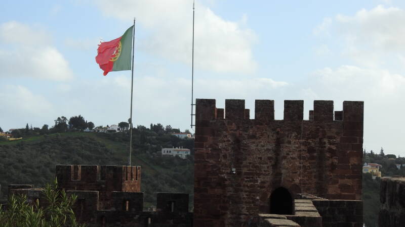 Ook Silves is gebouwd op en rondom een heuvel. Traditiegetrouw staan helemaal op de top het kasteel en de kathedraal. De laatste heeft zijn deuren potdicht, zodat we het met de buitenkant moeten doen. Het kasteel heeft het heel anders geregeld. We betalen de senioren entreeprijs, wat voor ons beiden neerkomt op € 2,80. Eigenlijk bestaat het kasteel alleen maar uit een volledig omsloten buitenmuur met kantelen. De binnenzijde is een groot vlak terrein met bomen, wandelpaden en een paviljoen. Wel zijn er op meerdere plaatsen restanten te zien van het oude binnenwerk, die samen met de informatieborden ervoor moeten zorgen dat de bezoeker doorheeft dat hij een kasteel bezoekt.