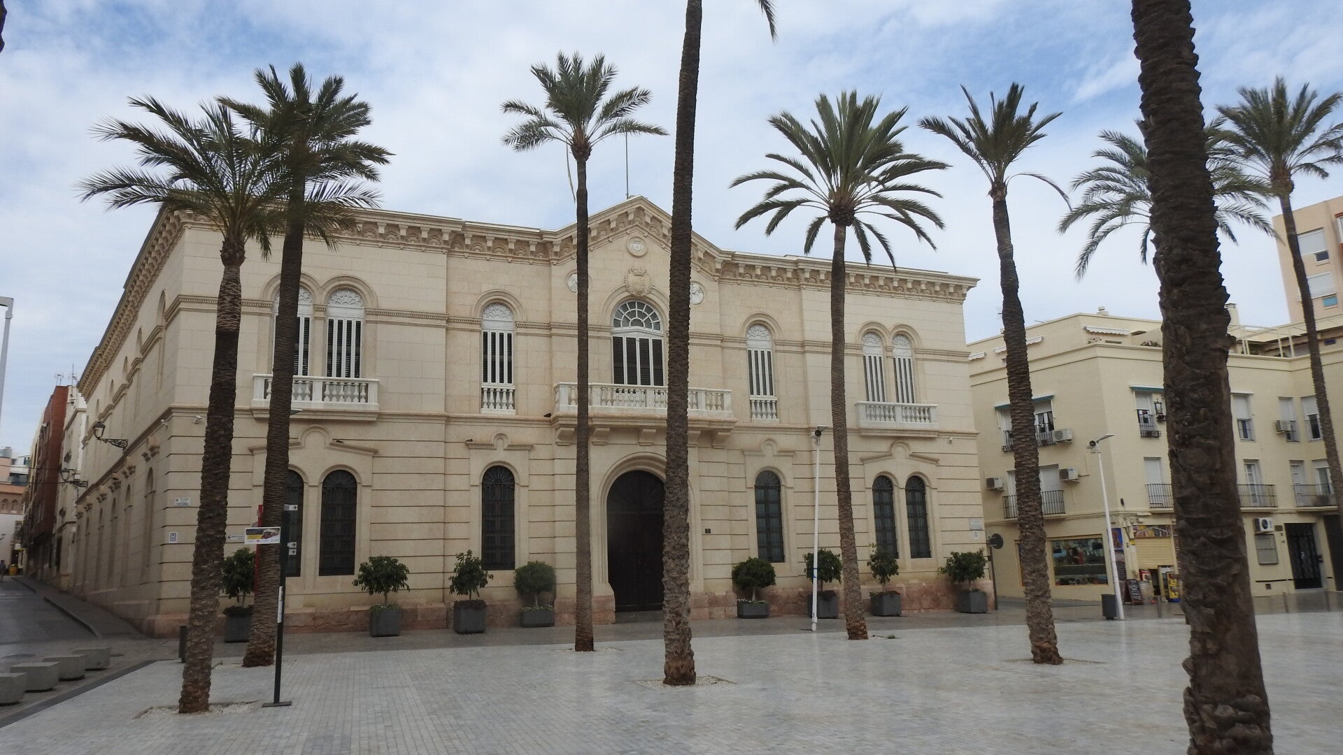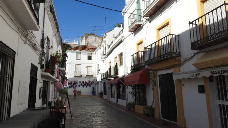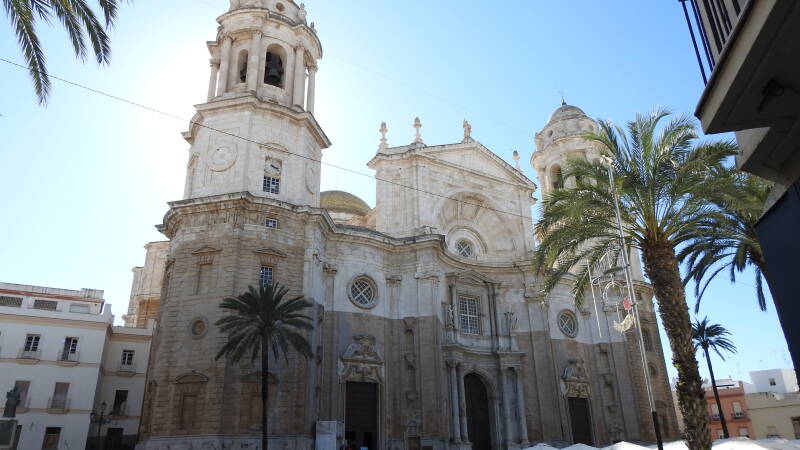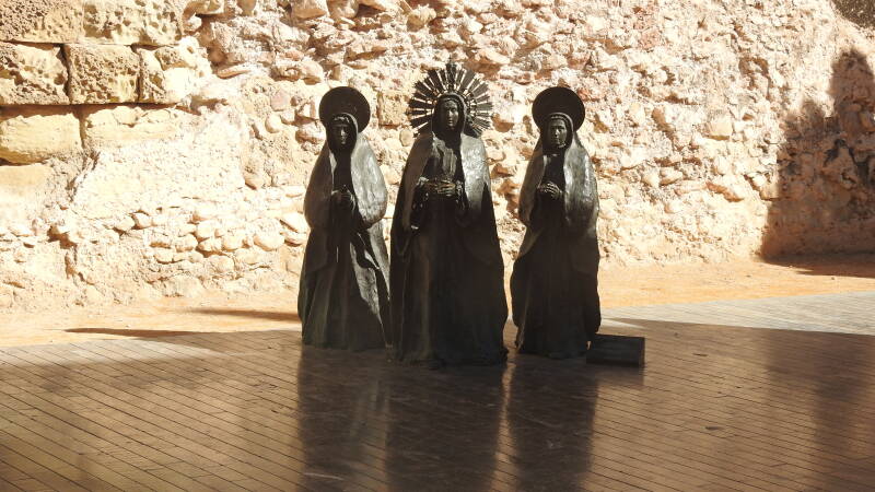Vijftien graden met een blauwe lucht, Spanje begroet ons op een wijze die bij het land past. Lopend gaan we naar het centrum. De Spanjaarden lopen allemaal met een winterjas aan, maar deze heb ik in de camper gelaten. Een trui is meer dan voldoende. De stad bezit een oud centrum met enkele historische gebouwen. Een kerkgebouw is helemaal ingemetseld tussen voorname huizen. Het centrum is een grote wandelpromenade en staat vol met middenstand. Op zondag zijn er veel gesloten. We verbazen ons over de elektra-aansluitingen die open en bloot aan de buitengevel hangen.