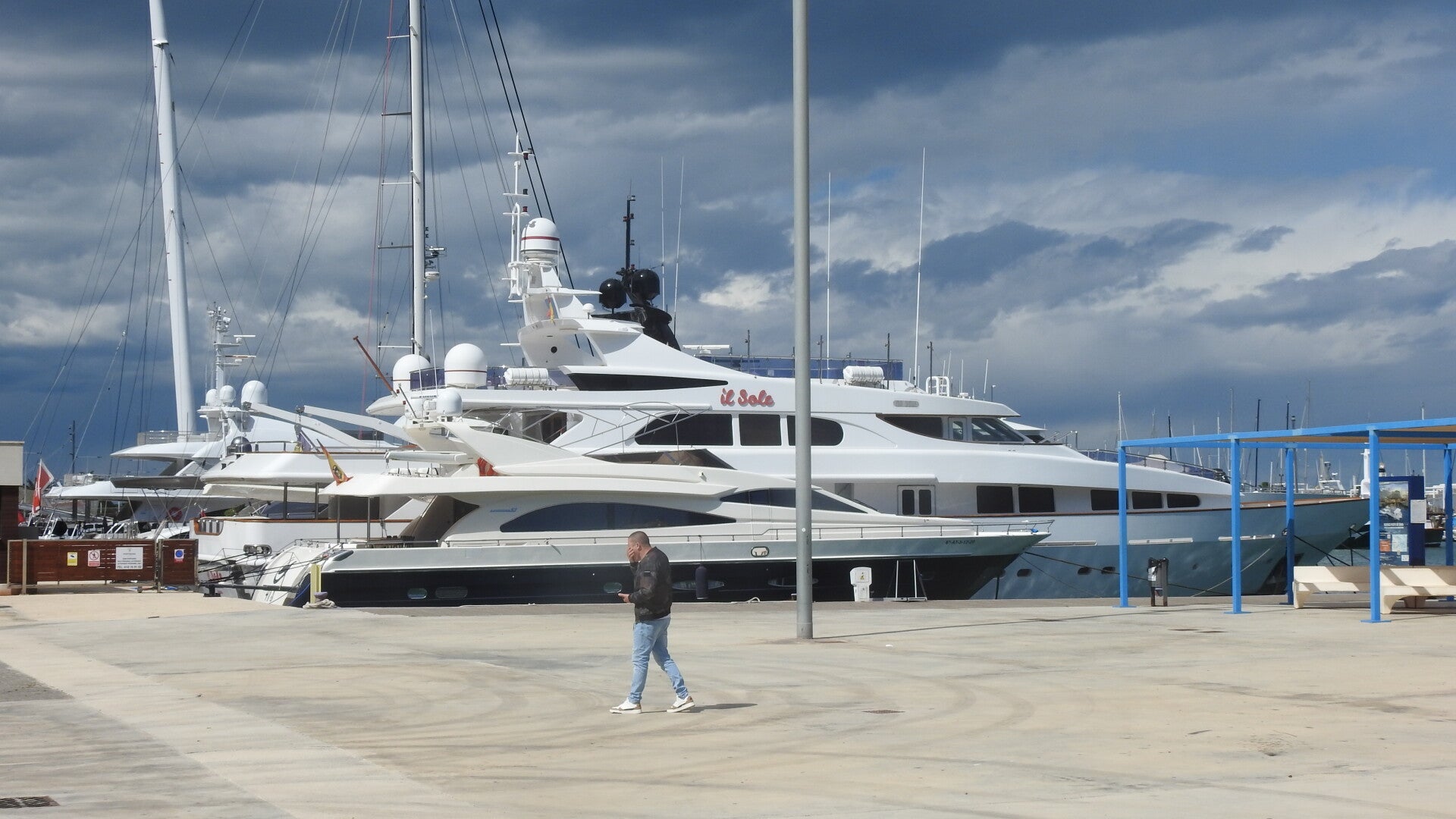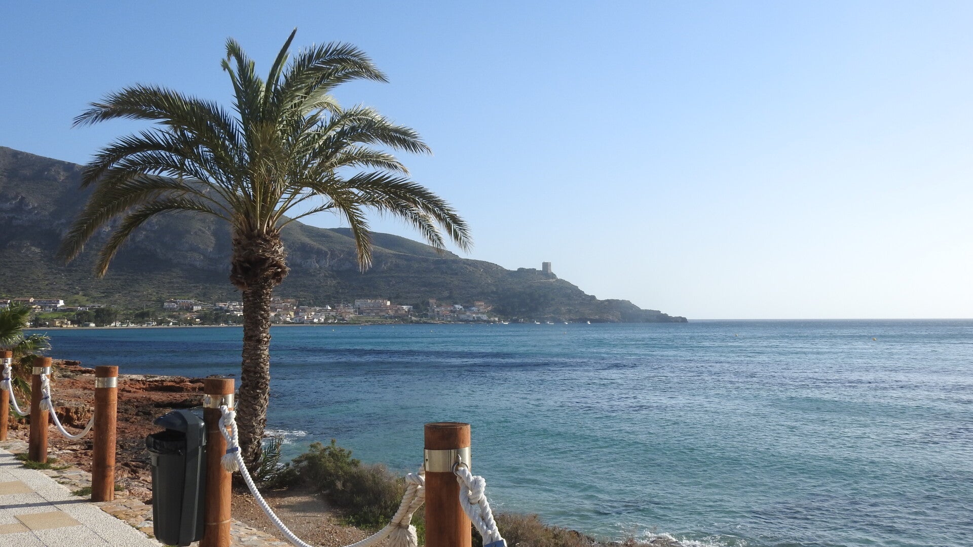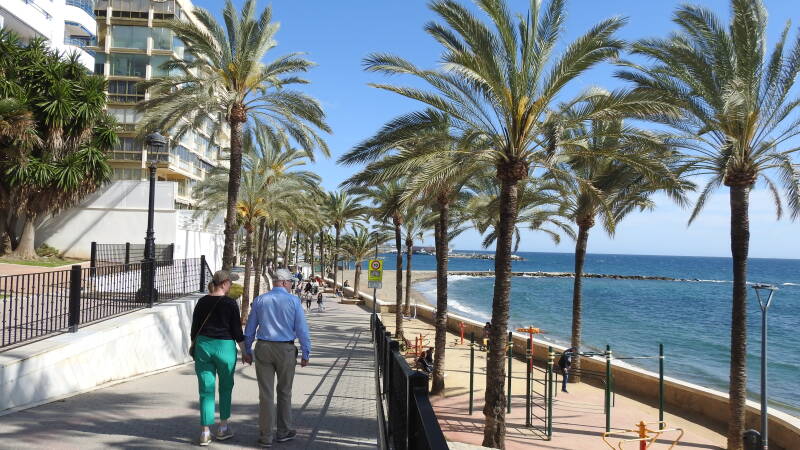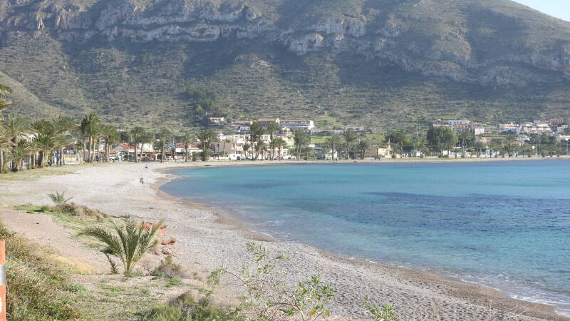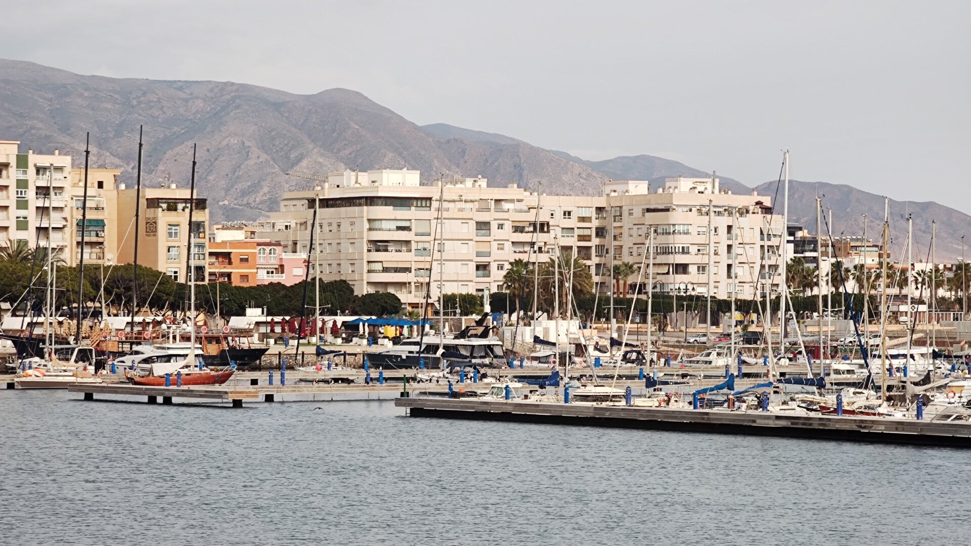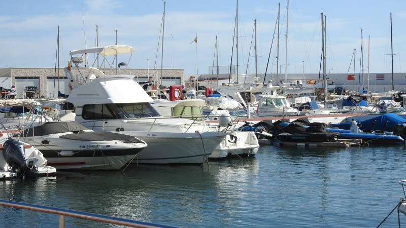 Als we goed geïntegreerd zijn, gaan we een wandeling langs de kust maken. Ook deze plaats heeft een heel lang strand, een aantal hotels en appartementen flats. De Spaanse kust wordt op deze manier een beetje saai. De Middellandse zeekust is weliswaar lang, maar veel ruimte is er niet meer over. We lopen een tijdje over het strand en later nemen we de boulevard. Ook hier is een behoorlijke jachthaven met alleen maar plezierbootjes tussen de palen. Alles ligt nog stil. De watersporters nemen de tijd voordat ze het grote water weer opzoeken. Langs de haven is een hele rij restaurants gecreëerd. Bij sommige is het best druk. De Spanjaarden schuiven zo rond drie uur ‘s middag graag aan en laten zich een volledige warme maaltijd voorzetten.