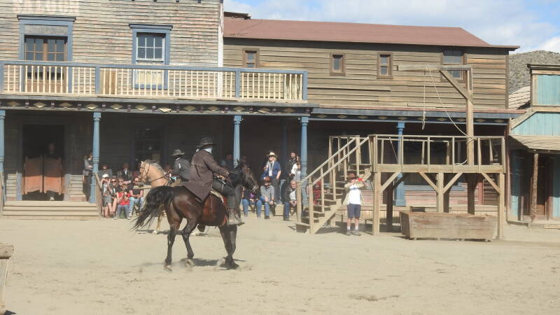 Als we terug naar de camper lopen, brengt de schoolbus de scholieren weer thuis. Waarschijnlijk komt dit de levendigheid op de hoofdweg ten goede.