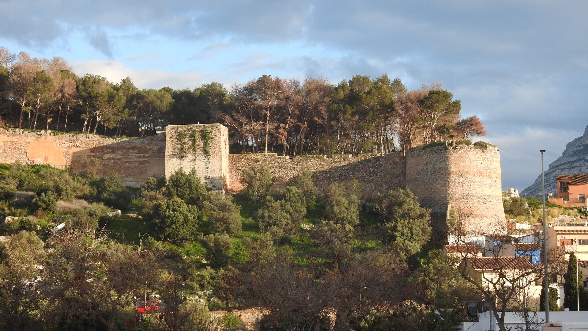 We lopen door naar de oude vestingstad. Deze is door de Moren gebouwd, maar hebben het prijs moeten geven aan de kruisridders. Het bouwwerk wordt nog wel de Alcázaba genoemd. De oude vestingmuur staat nog steeds overeind en op plekken waar dat niet meer zo was, is het weer gerestaureerd. Hanna en ik lopen de muur op en kunnen de volledige rondgang maken. Het enige wat ons bedreigt is een forse regenbui. We schuilen onder de eeuwenoude kantelen. Diverse opgravingen laten iets van het historische gebruik zien. Ook nu vinden er uitgebreide herstelwerkzaamheden plaats, zodat de burcht ooit weer zijn oude luister zal herwinnen.