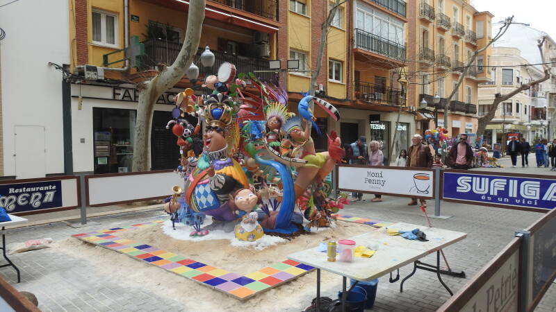 Dat daalt het besef in dat het vandaag de grote Fallas-feestdag is. Het vuurwerk horen we al dagenlang en het begint te wennen. Maar het gebeuren krijgt zijn apotheose op 19 maart. Alle bedrijven en winkels zijn dicht. Dit is de dag dat de hele provincie Valencia vrij heeft genomen. Ik klik alle winkelwagentjes aan op de kaart van Google. Het blijkt dat er een supermarkt gekoppeld is aan een tankstation en die is wel open. Daarvoor moeten we 10 kilometer brommen, wat 14 wordt omdat ik de verkeerde rijstrook op de snelweg inrij. De zaak is niet groot maar heeft alles. Met opnieuw een foute afslag duurt de terugreis iets langer dan nodig, maar onze koelkast is weer op niveau.