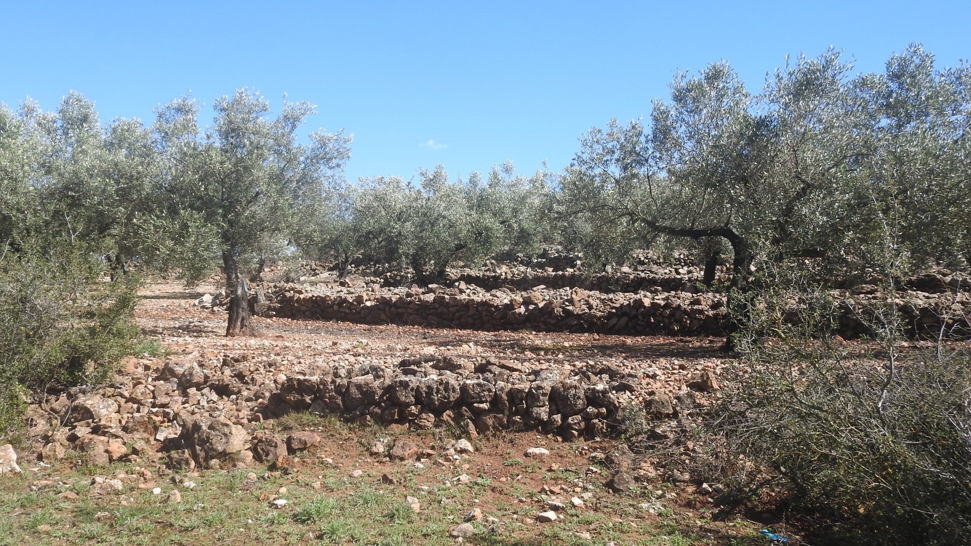 Via de snelweg snorren we naar Vilanova Alcolea. Dit een een mooi authentiek dorp in een bergachtige streek. De gemeente hier heeft ook een gratis camperplaats ingericht. Het is er niet druk en we parkeren op een mooie plaats. In de middag gaan we een wandeling door de omgeving maken. Via route-you heb ik een route van 6 kilometer gevonden die ons door de velden stuurt. Het weer is vandaag een stuk beter. Vanaf elf uur is het volop zonnig. We nemen wat eten en drinken mee en stappen met de stevige wandelschoenen het ruige pad op. De tocht gaat langs grote velden vol met olijf- en amandelbomen. Het is sterk heuvelachtig zodat we regelmatig de bergversnelling moeten inschakelen om op de top te komen. Naar beneden gaat dan weer heel soepel.