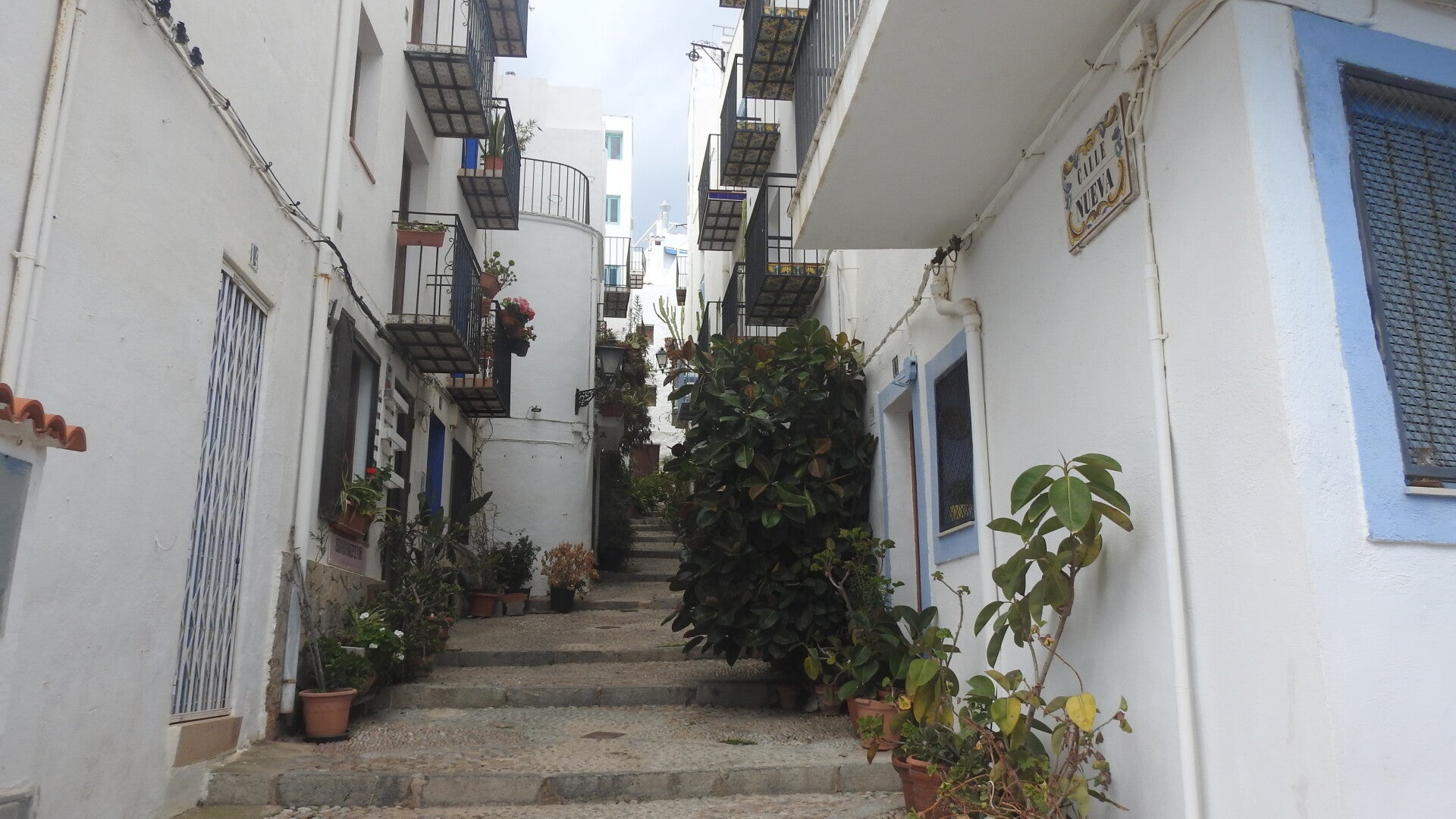 We komen bij de kust weer echt in een mondaine badplaats terecht. Een prachtig gelegen strand valt als eerste op, waar een zeer ruime boulevard/plein achter ligt. Ook hier is best veel volk op de been. Iets verderop ligt de historie. Hoog boven alles uit, prijkt bovenop de rots het oude kasteel. Rondom de route ernaartoe is al veel te doen. Hier moet het in de zomer erg gezellig zijn. We lopen het historische stadje op de rots binnen. Kleine, nauwe steegjes verbinden de huizen aan elkaar. Veel panden zijn in bezit genomen door de horeca, die het presteren in de smalle paden ook nog een terras te exploiteren. Wat geen horeca is, is een snuisterijwinkel of iets wat daarbij in de buurt komt.