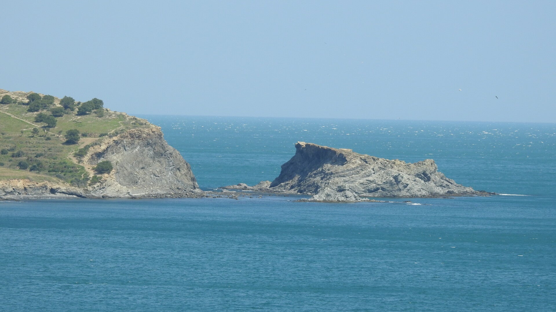 We verlaten de snelweg en gaan naar het meest noordoostelijk puntje van Spanje. Daar parkeren we aan de zee. We hebben uitzicht over een baai die overgaat in de Middellandse zee. We staan vrij in het buitengebied, maar de plek valt onder Colera. Aanvankelijk hebben we het weer mee. Al de hele ochtend schijnt de zon en bij aankomst gaan de stoelen dan ook naar buiten. Maar helaas blijven de omstandigheden niet zo. De wind trekt steeds verder aan, op het laatst staat de camper er zelfs van te schudden. Een grote partij aaneengesloten wolken slaagt erin om voor de zon te schuiven. Hierdoor wordt het buiten onaangenaam en verhuizen we weer naar binnen.