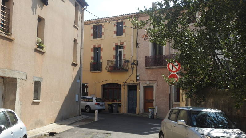 We willen weten in wat voor buurt we zijn gestrand. Dus trekken we eropuit. Montblanc is een heerlijk authentiek Frans dorp. Weinig nieuwbouw om de sfeer te verpesten. Smalle straten, trapopgangen naar hoger gelegen delen en een robuuste kerk, helemaal op de top van de heuvel gebouwd. De meeste winkels zijn gesloten en er is niet veel volk op de been. Maar de mooie blauwe kleuren doen het goed in het straatbeeld.