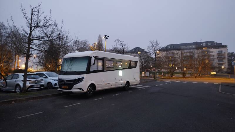 We stoppen twee keer om wat te eten en de benen te strekken. Ons reisdoel is Sens, maar dit blijkt op het eind het dorpje Gron te zijn wat tegen deze Franse plaats aan ligt. Het eerste wat we doen is de watertank vullen. Deze is op een paar liter na helemaal leeg. Maar eerdere pogingen om te vullen strandden omdat de kranen afgesloten waren in verband met mogelijk winterweer.