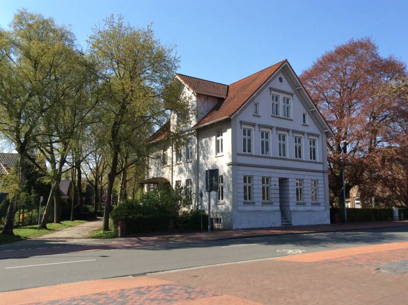De huidige bestuurders passen goed op het historische pand. Het staat van trots te blaken in het zonlicht. Rondom ligt een prachtig park met nette wandelpaden. Stadt Leer is duidelijk content met de nalatenschap van de adel van weleer.