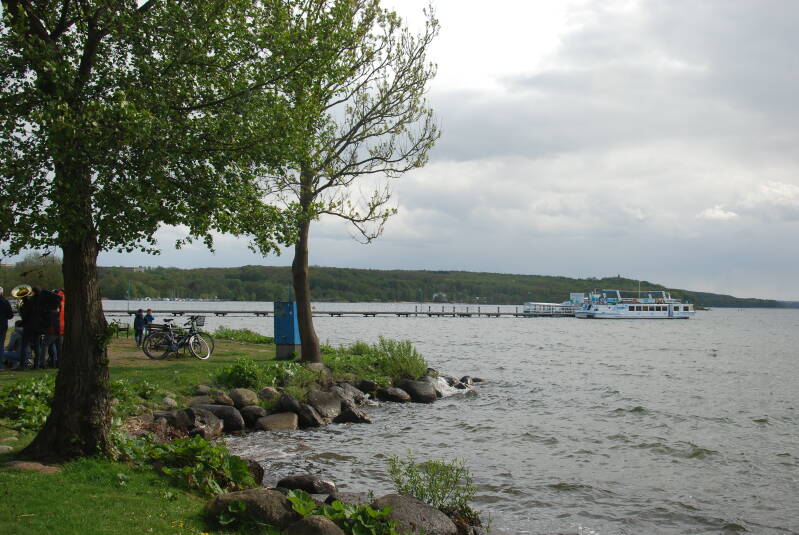 ‘s Avonds lopen we langs het meer van Plau am See. Aan de steigers liggen luxueuze jachten. Op de oever staan prachtige huizen. Er zijn restaurants, hotels en vele snackgelegenheden. We lopen over een grote camping. Het is duidelijk dat als het weer mooi is en velen vakantie hebben dat het hier heel levendig kan zijn. Nu is alles nog dicht en gesloten en staan we ook als enigen op een groot parkeerterrein. De omgeving is schitterend; grote meren in een decor van beboste heuvels. De DDR is hier verleden tijd en is veranderd in een mondaine badplaats.
