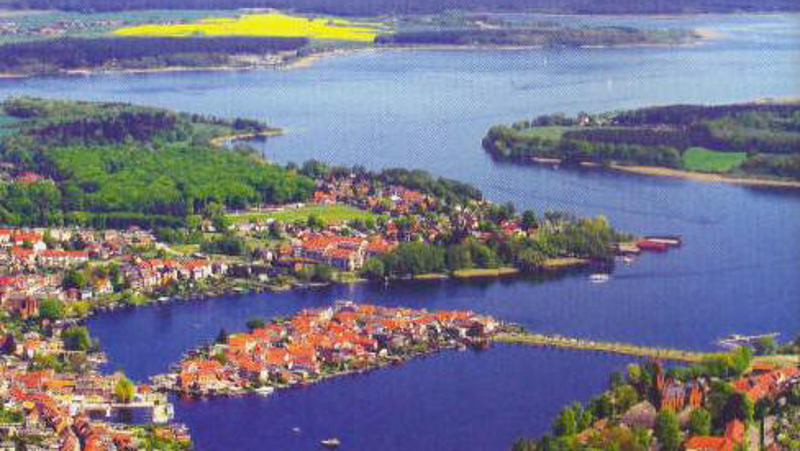 Vanmorgen zijn we vertrokken uit Rheinsberg. Gisteravond hebben Jan en ik door het park rondom het Schloss gezworven. Dit gebouw ligt prachtig op een eiland bij een groot meer. Het is een en al allure en voornaamheid wat er vanaf straalt. Zeer fraai gebouwd met speelse torens en een zuilengang. In Mirow stoppen we. Ook hier ligt weer zo’n prachtig Schloss. Dit deel van Duitsland heette indertijd Pruisen. De adel investeerde in prachtige landhuizen om hun rijkdom te laten zien. Het exemplaar van Mirow is minder statig maar wel schitterend gelegen bij het water. We wandelen er omheen en komen op het ‘Liebesinsel’ te staan via een mooie gietijzeren brug.