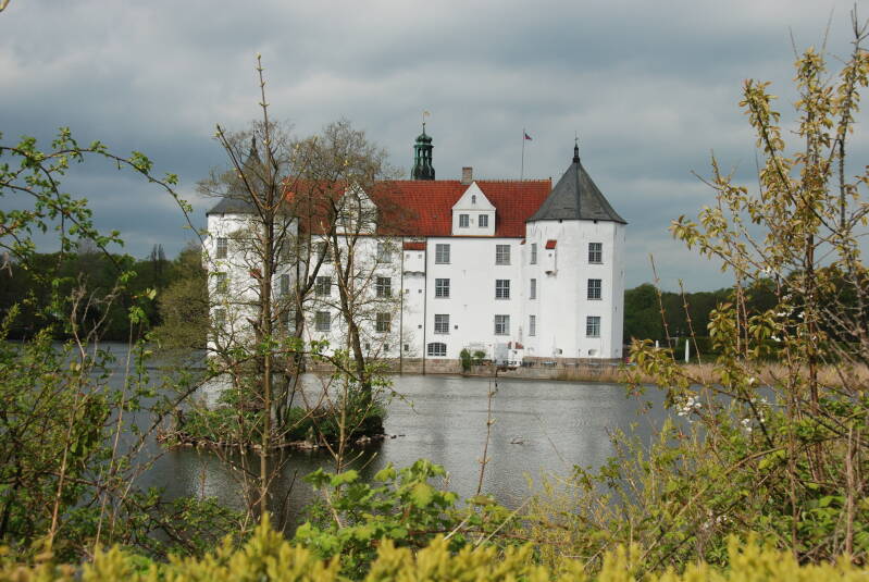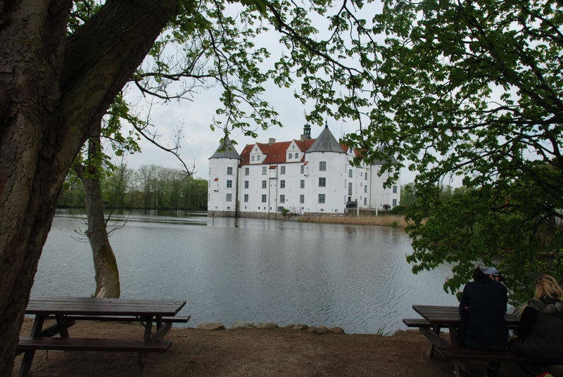 We passeren weer een grens en komen terug in Duitsland. We pakken de eerste afslag naar Glucksburg omdat we het daar gelegen slot gaan bekijken. De bezichtiging gaat in groepen onder leiding van Duitstalige gids. Het slot beschikt over zeer ruime vertrekken. We hebben enkele heel bijzondere museumstukken gezien. Als we op de camperplaats in Eutin staan, valt deze ons tegen daarom rijden we door naar Bosdorf. We komen achter een restaurant te staan op een aardig veldje. Even lijkt het erop dat we buiten kunnen zitten maar we moeten de zon al snel inwisselen voor onweersbuien.