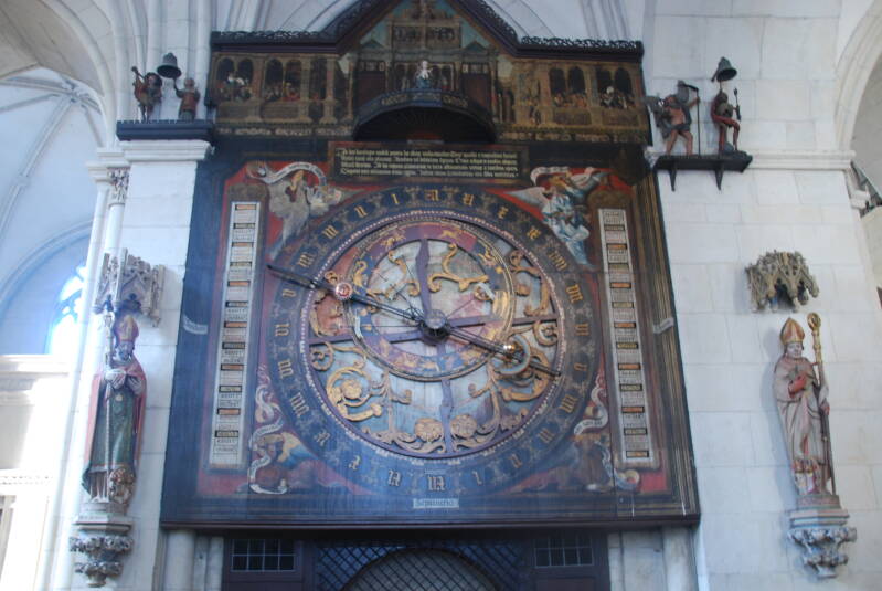 Aan een groot plein staat de Dom van Munster of ook wel de Sint Pauluskerk genoemd. Jan en ik zijn op zoek naar de astronomische klok welke een thuisbasis heeft in dit gebouw. Ook hier zorgt een mis voor vertraging van onze plannen maar uiteindelijk staan we oog in oog met het bijzonder knappe instrument uit de late middeleeuwen. Zon, maan, planeten en de dierenriem bewegen op het aansturen van het houten mechanisme en toont de kijker de exacte tijd en de positie van de genoemde hemellichamen. Een bijzonder knap stukje werk in een tijd dat weinigen op de hoogte waren van de geheimen van ons uitspansel.