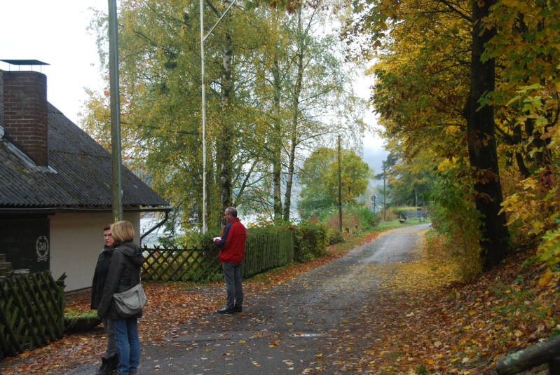 Bij de CP zijn een aantal horecapanden tegen de oever van het meer geplakt. Een rondvaartboot ligt op het droge. Het grote parkeerterrein is nagenoeg leeg en slechts een horecabaas heeft de moed om open te zijn. Het seizoen is duidelijk over. Wij zijn zeer tevreden met het fantastische uitzicht over het water en het bos wat duidelijk op het punt staat zijn verkleurde bladerdek te verliezen.