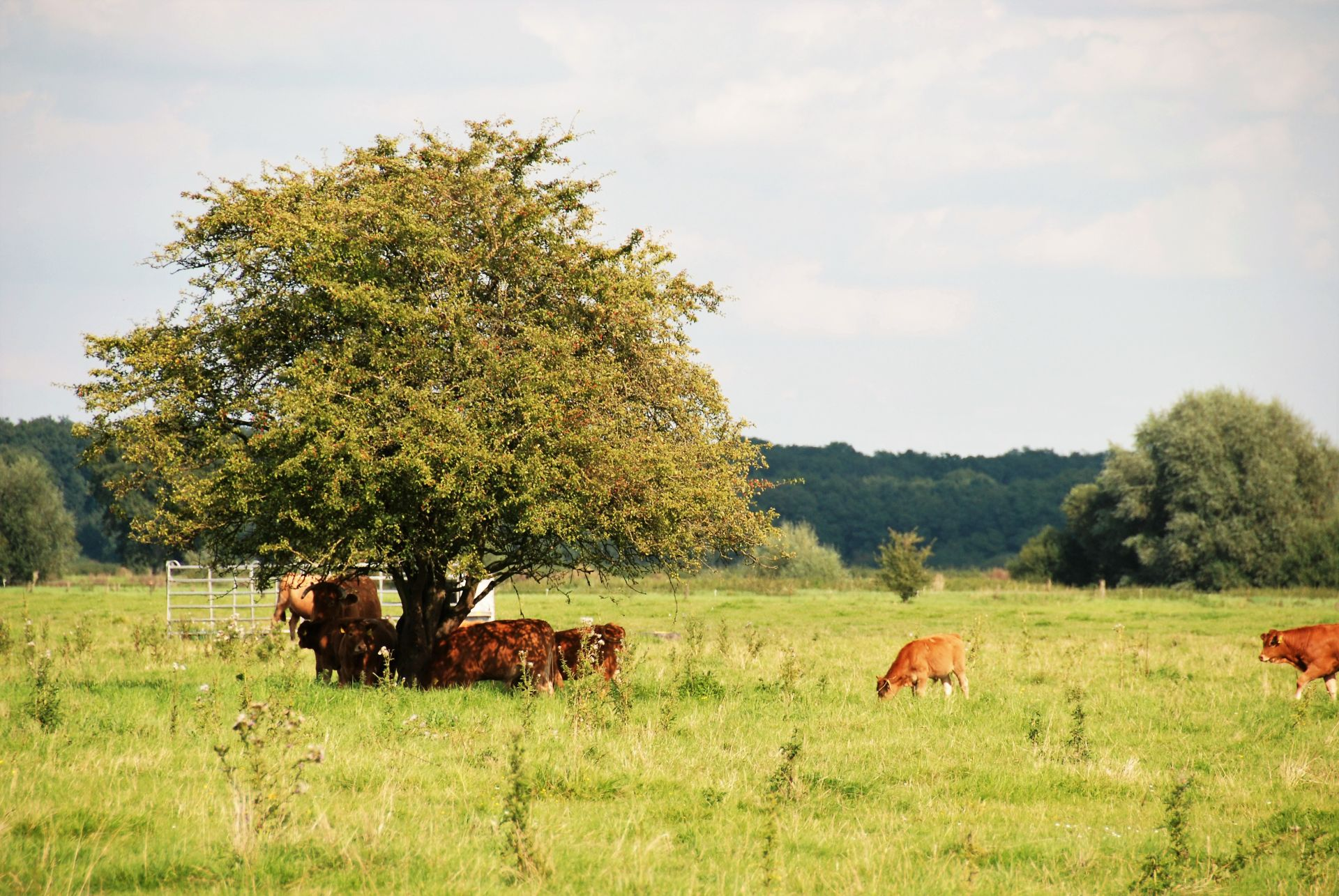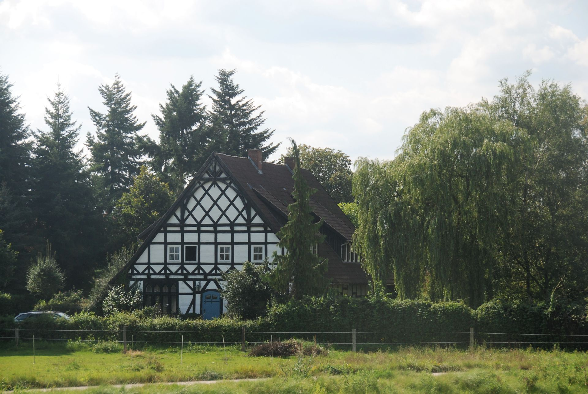 Het blijkt dat het plaatsje in de streektaal ‘Bier’ heet. Als mijn zwager dit had geweten, zou hij er nu wonen. Onze traptocht gaat verder via een alleraardigst boerenweggetje naar Eilte. We passeren de rivier de Aller die schitterend door het landschap meandert. In een wei lopen prachtige rode vleeskoeien op hun lot te wachten. Daar tegenover grazen zwarte buffels, elf in totaal.