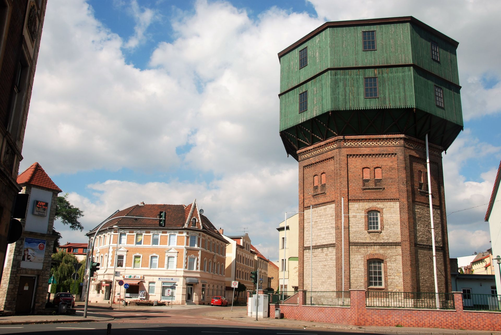We ontdekken één pand waarvan we verdenken dat het er al de nodige jaren staat. Hoewel we her en der wel een antiek geveltje hebben gezien en een watertoren waarvan het waterreservoir geheel met hout is omkleed. We zijn weinig gezellige hoekjes of knusse pleinen tegengekomen, het verkeer raast steeds om je heen zodat onze conclusie is dat de stad een make-over zou moeten krijgen wil het toeristisch punten scoren.