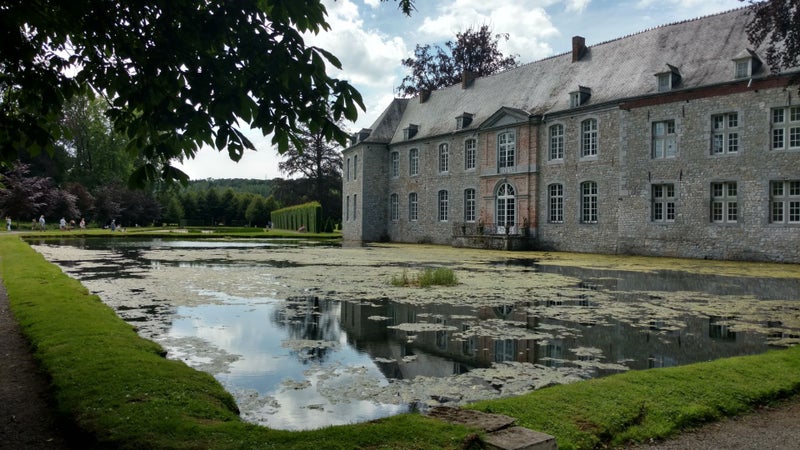Uiteindelijk zijn we België weer binnen gerammeld. Via wegen door de Ardennen met prachtige vergezichten zijn we op Annevoie aangereden om daar de schitterende aangelegde tuinen uit de 18e eeuw te bewonderen. Ruim anderhalf uur hebben we bij prima weer daar rondgeslenterd tussen Franse, Italiaanse en Engelse tuinen, verfraaid met waterpartijen. Door slim gebruik te maken van het hoogteverschil en alles aan elkaar te koppelen met buizen, zie je verschillende fonteinen het water meters omhoog spuiten zonder dat er een pomp aan te pas komt. Mede door mooie bloemenperken, aan elkaar verbonden met romantische bomentunnels en aangekleed met goed geboetseerde beelden, wanen we ons helemaal in de 18e eeuw.