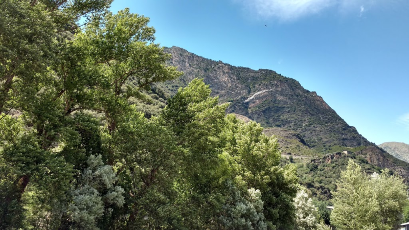 Onze camper trekt de Pyreneeën in. Hoge bergen omringen ons pad maar gunnen hem wel ruimte. Wat opvalt, is dat het erg groen is. Donkere wolken boven ons vertellen hoe dat komt. Via leuke bergweggetjes steken we het gebergte over. We worden vergezeld door talloze motoren voor wie dit terrein een leuk speelhof is. Doel van vandaag is Andorra.