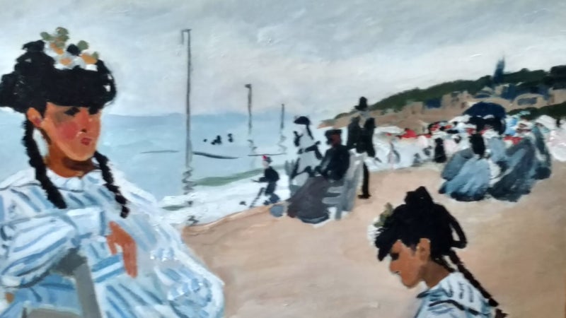 De hoofdstraat is bijzonder druk met wandelaars. Verderop staat de kerk waar ook de graftombe van de schilder te vinden is. Ter ere van hem heeft de gemeente een museum gebouwd met louter impressionistische kunstwerken van meerdere kunstenaars.