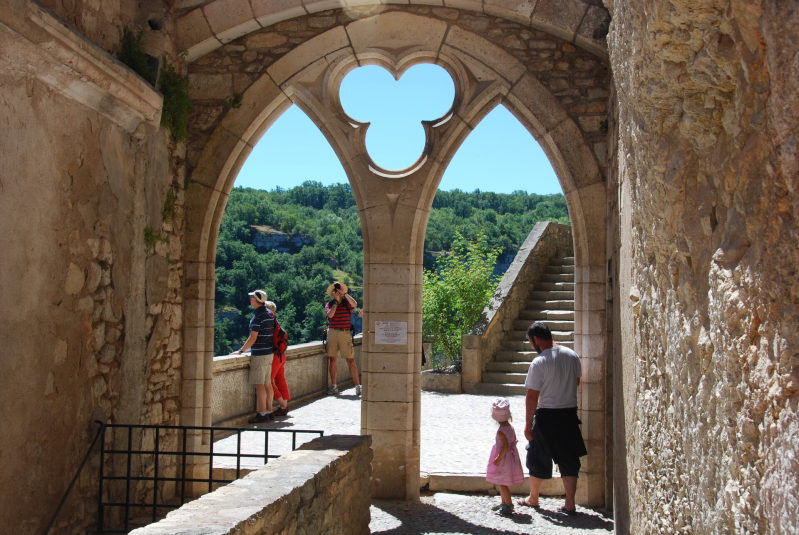 We reizen verder naar Rocamadour. Dit is een heel bijzondere plaats, welke tegen een rotswand is aangebouwd. Het is vooral een bedevaartplaats. Langs de rotswand loopt een kruisweg naar de kathedraal. We dalen vanaf de CP helemaal af naar de straat beneden waar het dorpje opeen gepropt is gebouwd. Het is een lang lint van winkeltjes en cafeetjes. Ook hier zijn weer veel toeristen op af gekomen zodat de handelaren goede zaken doen. Op de CP is volop plaats. In de namiddag kunnen we vanaf onze plaats een nagespeeld middeleeuws riddertoernooi zien. Paarden rennen langs elkaar en er is veel geschreeuw. Ridders en jonkvrouwen proberen elkaar te verleiden. De show eindigt met veel vuurwerk.