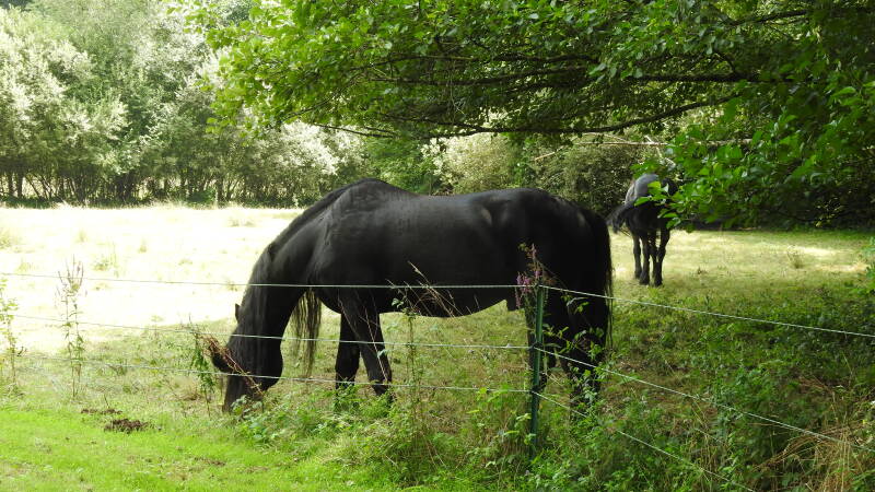 We staan op een kleine parkeerplaats bij een schattig meertje. Het wandelpad rondom heeft een niet te missen aantrekkingskracht. Met de stevige schoenen aan de voeten banjeren we langs de oever. Onderweg genieten we van mooie natuurlijke doorkijkjes. We passeren een veldje wat de naam weiland niet mag hebben. Toch lopen hier drie paarden. De beesten kunnen echter ook het naastgelegen bosperceel gebruiken als voedselbron. Ze hebben daartoe vrije doorgang. Het rondje is snel gelopen, en wij willen nog wel wat meer zien. We lopen een donker bospad af. Een klein waterloopje vergezelt ons. Even later staan we in het open veld en kunnen we langs een al bijna rijp maisland wandelen. Na een tijd houden we het voor gezien en via hetzelfde pad, gaan we terug naar de camper.