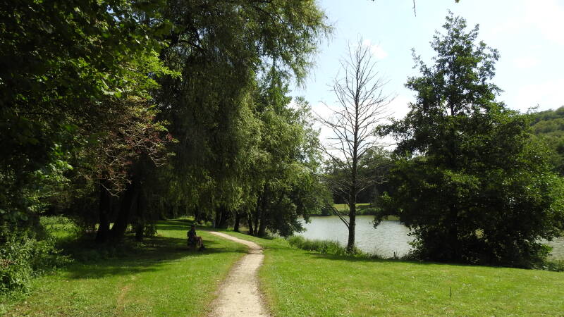 We staan zo voortreffelijk aan de Doubs, dat we tot na het middaguur blijven staan. We brengen de tijd door met heerlijk lummelen langs de waterkant, onder een grote plataan voor de schaduw. Want dit deel van Frankrijk heeft een warme dag.