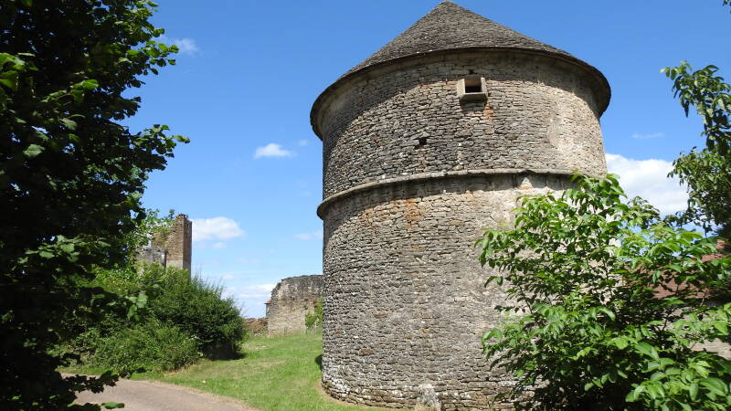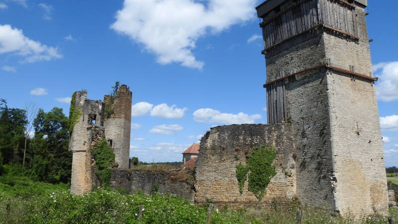 De volgende stop is in het dorp Oricourt. Hier staat een minstens zo oud restant van een kasteel. Hoewel het bouwsel al kilometers ervoor wordt aangeprezen op toeristische borden, staat hier geen welkomstcomité klaar. Sterker nog, de toegang is gesloten. Alleen op woensdag en zondag worden hier nieuwsgierigen rondgeleid. We zullen het moeten doen met een buitenaanzicht. We banen ons een weg over het grasveld en kunnen door half ingestorte muren iets zien van het binnenplein. In de rangorde van robuuste kastelen zou dit exemplaar ergens onderaan bungelen. Wel is het weer een dijk van een getuigenis van eerdere tijden. Dikke, hoge muren en daarboven nog uitkijktorens met verschansing. Het laat ons weten dat het vroeger er zeker niet zo ontspannen aan toe ging, als nu in het buitengebied. We zien meerdere gebouwen tegen de buitenmuur geplaatst. Binnen de burcht vertoefde een heel gezelschap van soldaten en burgers, die hun best deden om een goed leven te leiden.