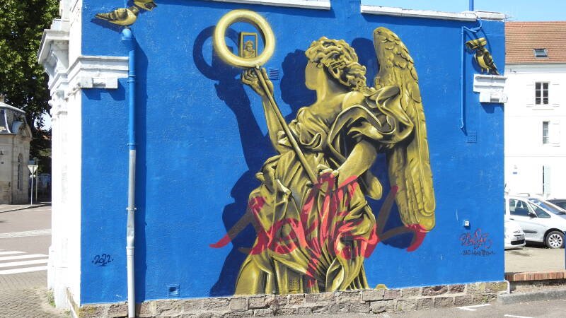 We rijden in rustig tempo naar Lure. Deze plaats ligt 18 kilometer noordelijker. Ik heb gelezen over de street art die hier te vinden is. We vinden een heel geschikte plek om de camper te stallen. Zowat tegen het centrum aan ligt een onbeheerd en semi verhard terrein. Na het installeren van onze woonwagen gaan we op pad. Het is slechts 400 meter lopen.