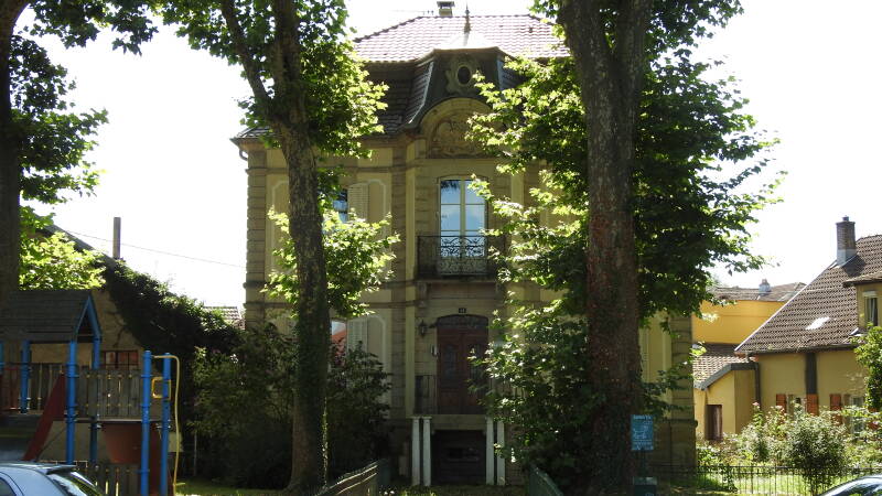 We lopen het dorp in. Niet ver van ons staat een kasteel uit de 16e eeuw. Het is in bezit van een particulier, en daarom niet te bezichtigen. Maar het buitenaanzicht is ook al indrukwekkend. De burcht is vaak van eigenaar en functie gewisseld in de afgelopen eeuwen. Een snobistische eigenaar heeft er zowel de vierkante middeleeuwse toren als de spitse baroktoren aan laten bouwen. Hiermee wilde hij aan de keizer laten zien dat hij een gewichtig dienaar was. Daarnaast is het wisselend in Franse of Duitse handen geweest, want de landsgrens is in deze regio meermalen verschoven.
