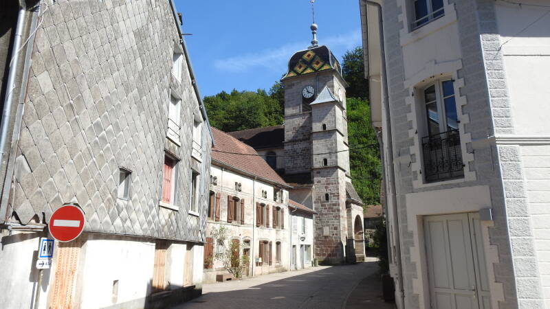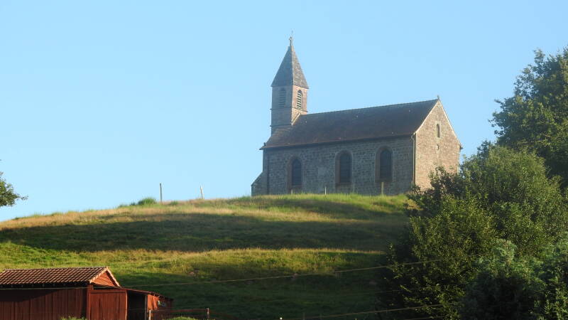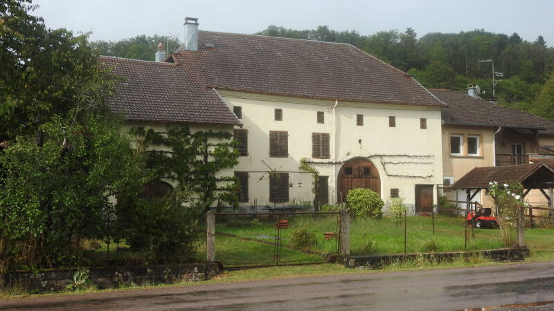 Op 3 augustus verlaten we het Zwarte woud. We rijden de Rijn over en halverwege de brug zijn we in Frankrijk. Het landschap is ook meteen Frans. In Oltingue parkeren we de camper stijf achter de kerk. Daar heeft de gemeente een keurige ontvangstplek voor campergasten geregeld.