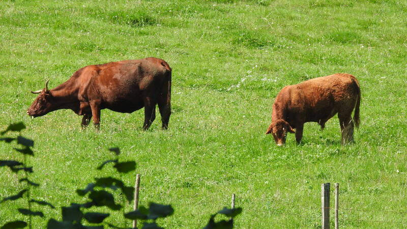 Dit is ook het terrein van de agrariërs. We passeren grote veebedrijven, en zien enorme velden voor akkerbouw. De mais staat hoog, het graan is allang geoogst en de akkers zijn al weer bewerkt voor de volgende teelt. We stoppen vandaag twee keer om goed om ons heen te kijken. Vooral vanaf de hoge gronden hebben we een schitterend uitzicht over dit productieve deel van Frankrijk.