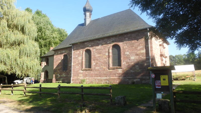 Zonder hoge verwachting toeren we door naar het dorp St Quirin. Direct bij het binnenkomen is een brede parkeerstrook aangelegd, waar alleen maar een vrachtwagen staat. Volop ruimte voor ons.
