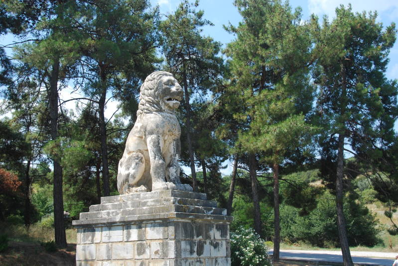 In Amfipolis is een stuk verdedigingsmuur opgegegraven.van 1500 BC. De kaart prijst het als archeologische vondst aan. Hanna leest een roman met zeezicht. Ik scheur naar de oudheid. De opbrengst is overigens mager. De opgraving is vrij te betreden. Een muur, opgebouwd met enorme blokken steen (100x50x50) is voor een lengte van 100 meter uitgegraven. Daarnaast enige resten van een fundament. De scooter wil weer terug. Onderweg komen we een enorme leeuw tegen die ook onderdeel uitmaakt van de cultuur van de muur.