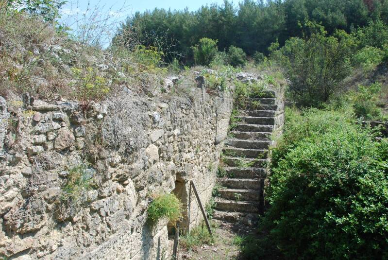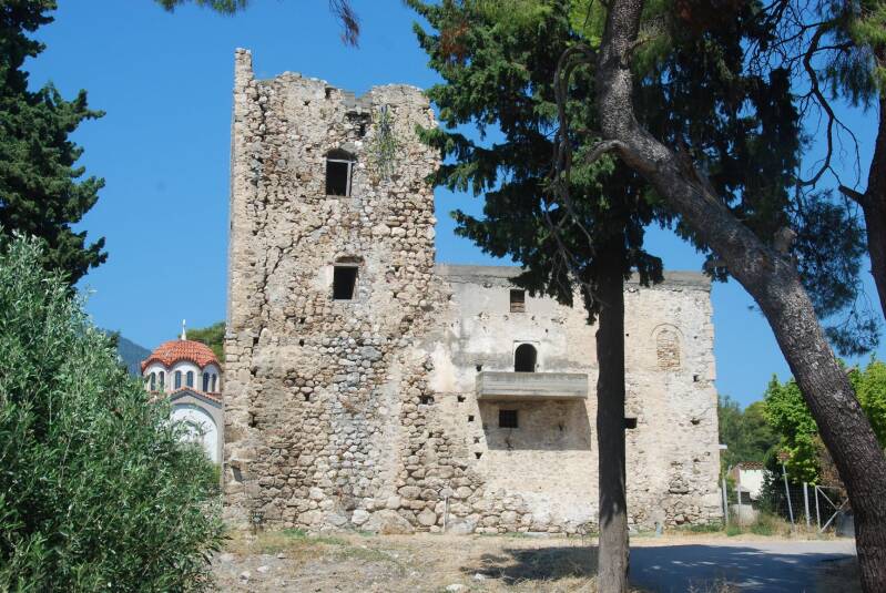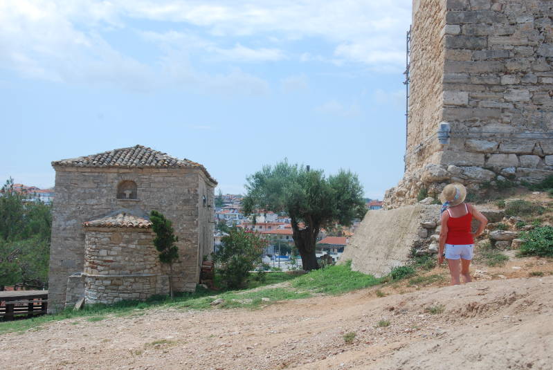 De Grieken hebben een historie om U tegen te zeggen. Ze zijn pas sinds 1830 een onafhankelijke staat. Al de jaren ervoor was er steeds een bezetter die de lakens uitdeelde. Toen het Romeinse Rijk instorte werd het opgedeeld in een westelijke deel waarin meteen chaos troef was en een oostelijk deel: ‘het Byzantijnse rijk’. Hier in Neo Fokia is een verdedigingswerk gebouwd waarvan nu nog de toren en een kappelletje overeind staat.