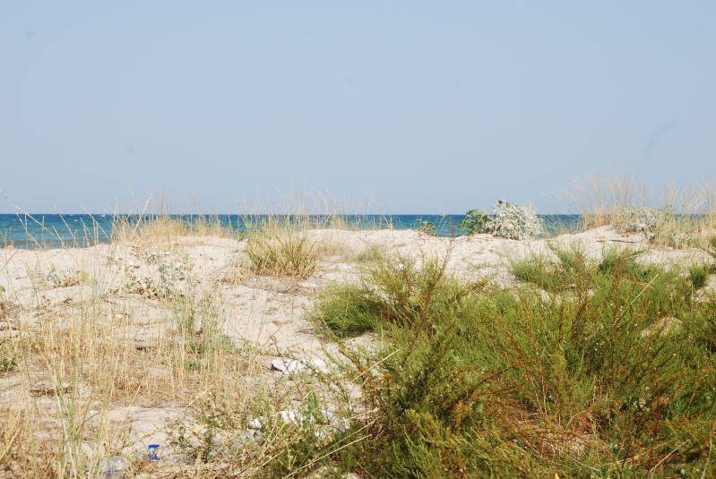 Dus, zo dacht ik, wat als het hier nu eens storm gaat lopen met enthousiaste snorkelaars die de wondere onderwaterwereld van deze regio wil beleven. Daarvoor kan ik een voorzet geven door te beschrijven welke geheimen er hier onder de waterspiegel voorkomen. Voorzien van mijn snorkel, ga ik te water. Vol verwachting werp ik de eerste blikken. Echter, alles wat ik te zien krijg, is een lege zeebodem, een laag kiezelstenen en een enkele rots. Bovendien staat er een behoorlijke deining waardoor ik, als ervaren snorkelaar, enigszins zeeziek word. Helaas, de belangstelling zal hier van het eindeloze strand en de altijd volop schijnende zomerzon moeten komen.