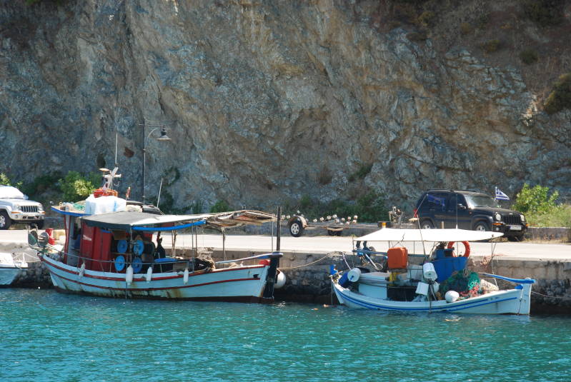 We verlaten Mourteri. De coördinaten van Akti Nireos zijn ingetoetst. Eendrachtig geeft het navigatie-duo de aanwijzingen. Na in Aliveri de provisiekast te hebben aangevuld komen we aan op onze bestemming.