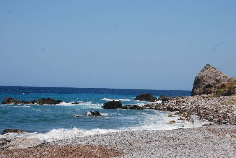 Kijk, je bent op vakantie in een andermansland. Zin in gedoe heb je dan niet. We vertrekken en proberen even verderop een zandpaadje. Een fikse wind blaast de zeewaterspetters over ons en de camper. Geen succes. We reizen door naar de volgende reisbestemming ‘Psarapouli’. Een heel lange strandweg en nauwelijks volk. Bij een boom parkeren we vlak aan zee. Niet de ideale dag.