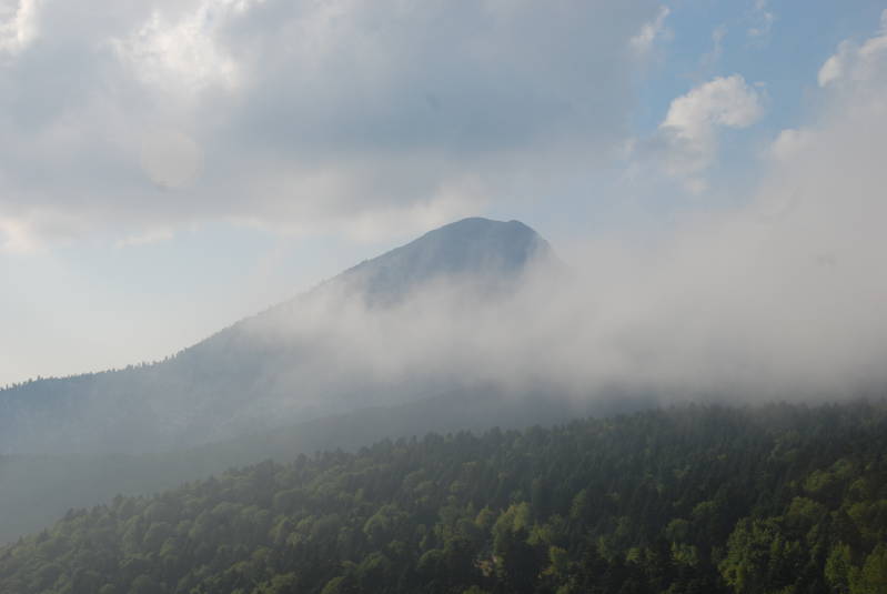 We verplaatsen onze aandacht naar mid-oost Evia. We rijden in een duidelijke andere omgeving. We naderen het gebergte Dirfis. Na Steni gaat het hard omhoog via een serie haarspeldbochten. Op 1000 meter hoogte parkeer ik de camper op een plateau met een geweldig uitzicht. Feitelijk staan we naast de hoogste berg van het eiland die 1700 hoog steekt. We overzien een groot dal en het landschap wordt opgedeeld door diverse heuvelruggen.