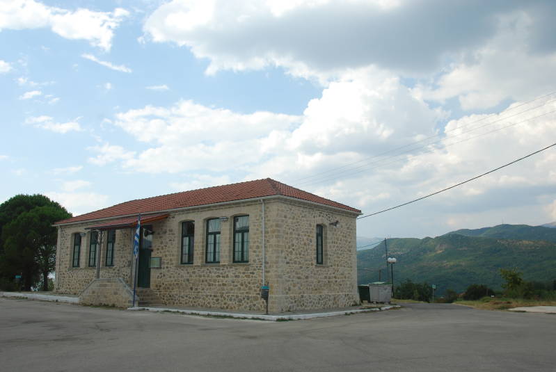 Het is ruim 36 graden. De lucht trilt boven Ktismata. De bladeren hangen onbewogen aan de bomen, er staat geen zuchtje wind. Het dorpsplein is leeg. Het hieraan gelegen gemeentehuisje staat statig z’n belangrijkheid uit te stralen maar er gebeurt niets, behalve dat de Griekse vlag lichtjes opveert bij een langstrekkende tocht. Wij naderen. Aangetrokken door een bordje waarop een camperplaats wordt aangeduid. Drie kilometer voor de Albanese grens houden we er voor vandaag mee op.
