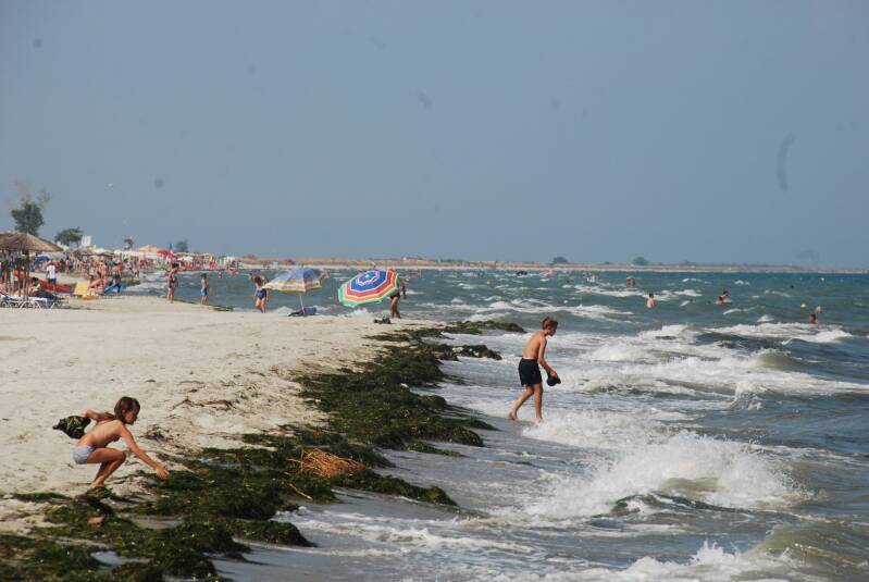 We krijgen vandaag regelmatig bezoek. Heel wat ‘Kallimera’s’ zijn nodig. Het zijn de lokale Grieken en die houden van de zee. Ze dobberen even, drogen wat na op het strand en weg zijn ze weer. In de middag neemt de wind weer toe tot krachtig. Met al dat wier op de bodem geeft dit een effect van een mixer in een kom met beslag. Waarschijnlijk daarom maken onze middaggasten meteen rechtsomkeer als ze de vieze grassoep aanschouwen waar de vanochtend nog zo heldere kustlijn in is veranderd.