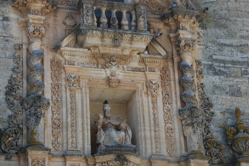Het innerlijk van de gotische kerk slaat alles. Wat een oppervlakte. Alle zijbeuken zijn benut om indrukwekkende taferelen aan ons te tonen. Zo passeren we een hommage aan Magelhaes, een ontdekkingsreiziger in Spaanse dienst.