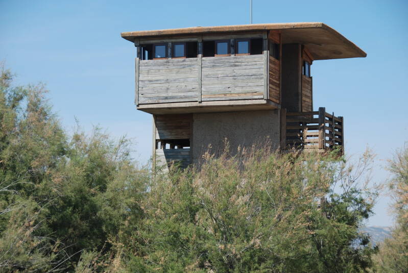 In de middag als de temperatuur weer aardig is opgelopen, ga ik alleen op excursie. Europa is gul voor dit Spaanse moeras geweest want ik kom zes vogelkijkhutten tegen op een afstand van twee kilometer. Ook hier krijg ik weer prachtige natuurplaatjes te zien. Een groep rallen vliegt verschrikt op door mijn nadering. Tot slot kom ik in een uitkijktoren terecht van waar uit het hele gebied is te overzien.