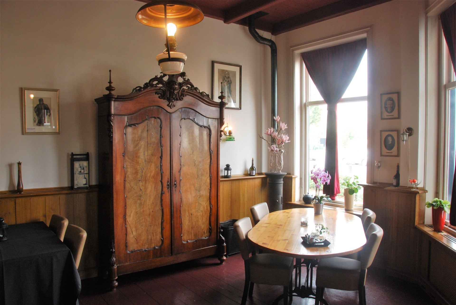 De kamers zijn met destijds dure spullen ingericht. Vooral de prachtige notenhouten kasten met inleg spreken mij aan. Het huis hangt vol met schilderijen waar vooral familieleden van de borgheer op staan afgebeeld.