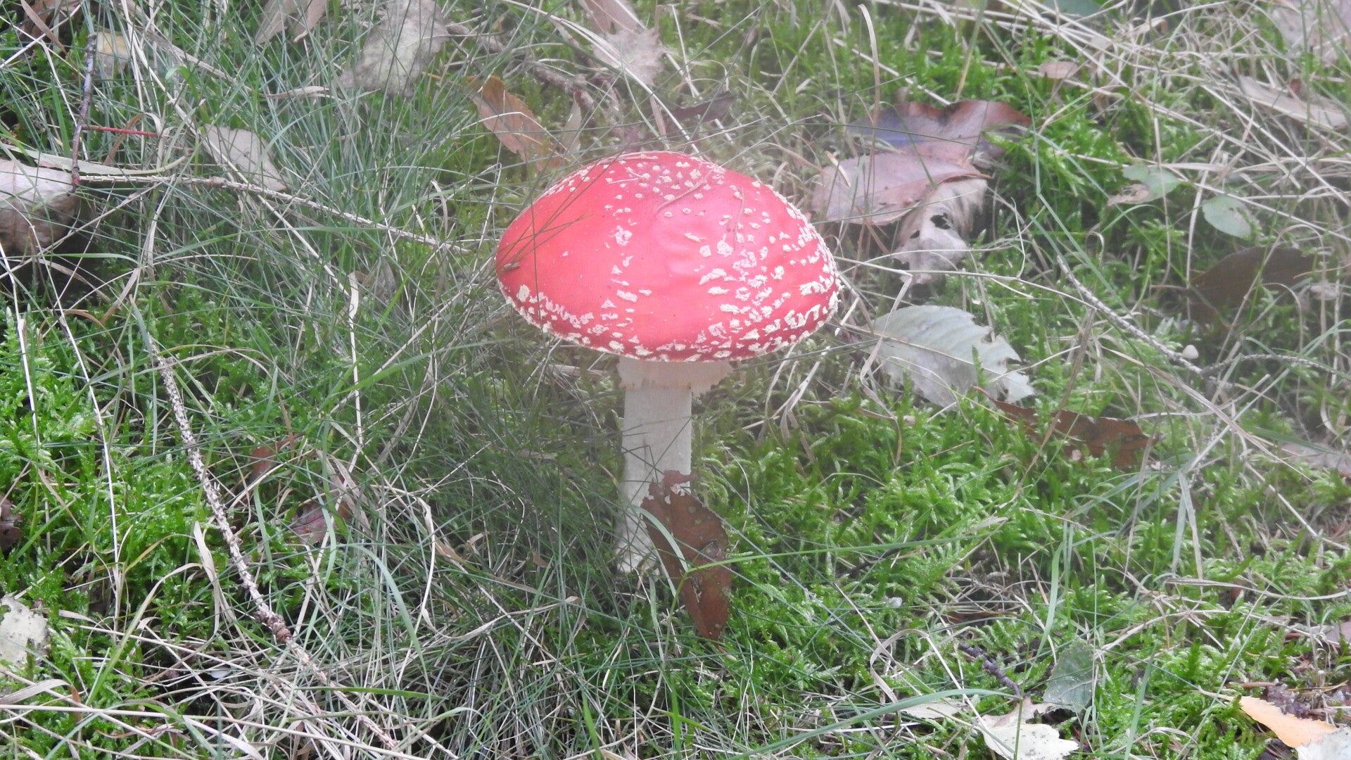 Gebiologeerd staan we naar een mooie vliegenzwam te kijken. Helder rood met witte stippen. Geen wonder dat mensen vroeger allerlei mystieke verhalen gingen bedenken rondom deze paddenstoel. Wat voor kinderen een kabouterhuis is, dient hier in de ongerepte natuur als voedsel. We zien dat de hoed al is aangevreten. Verderop komen we nog veel meer paddenstoelen tegen, in allerlei variaties. Als niet te negeren tekens van de herfst, samen met de al veelvuldig vallende bladeren.