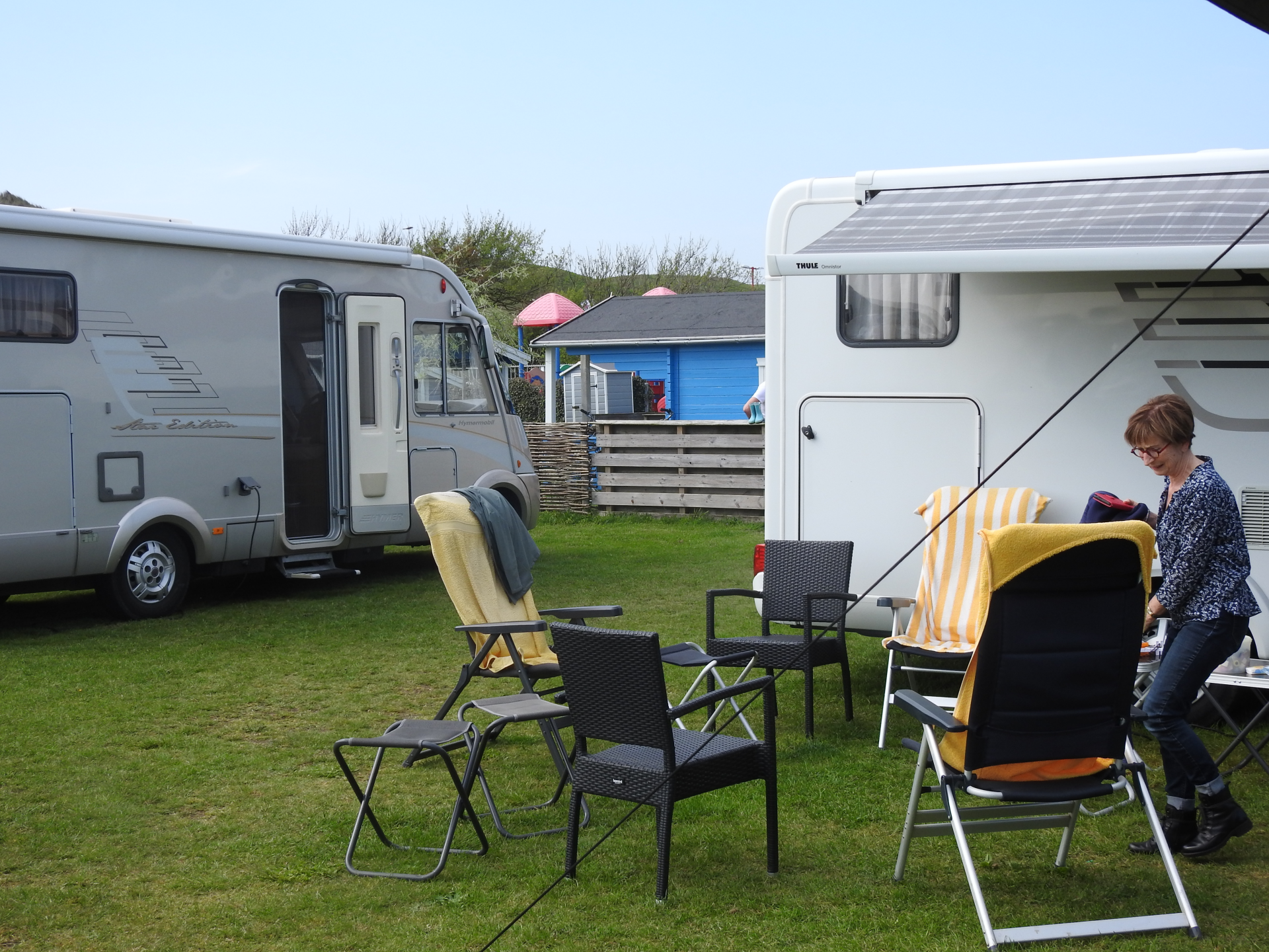 Wij arriveren een dag eerder. Op camping 'De Zwaluw' gaan we ons settelen. Ook Jan&Rita hebben al een plek gevonden en op de avond komt ook dochter Marge met gezin aanrijden in de ternauwernood gerepareerde Volkswagen T3. Andere familieleden hebben een huisje gehuurd, zodat het vrijdagavond al gezellig is.